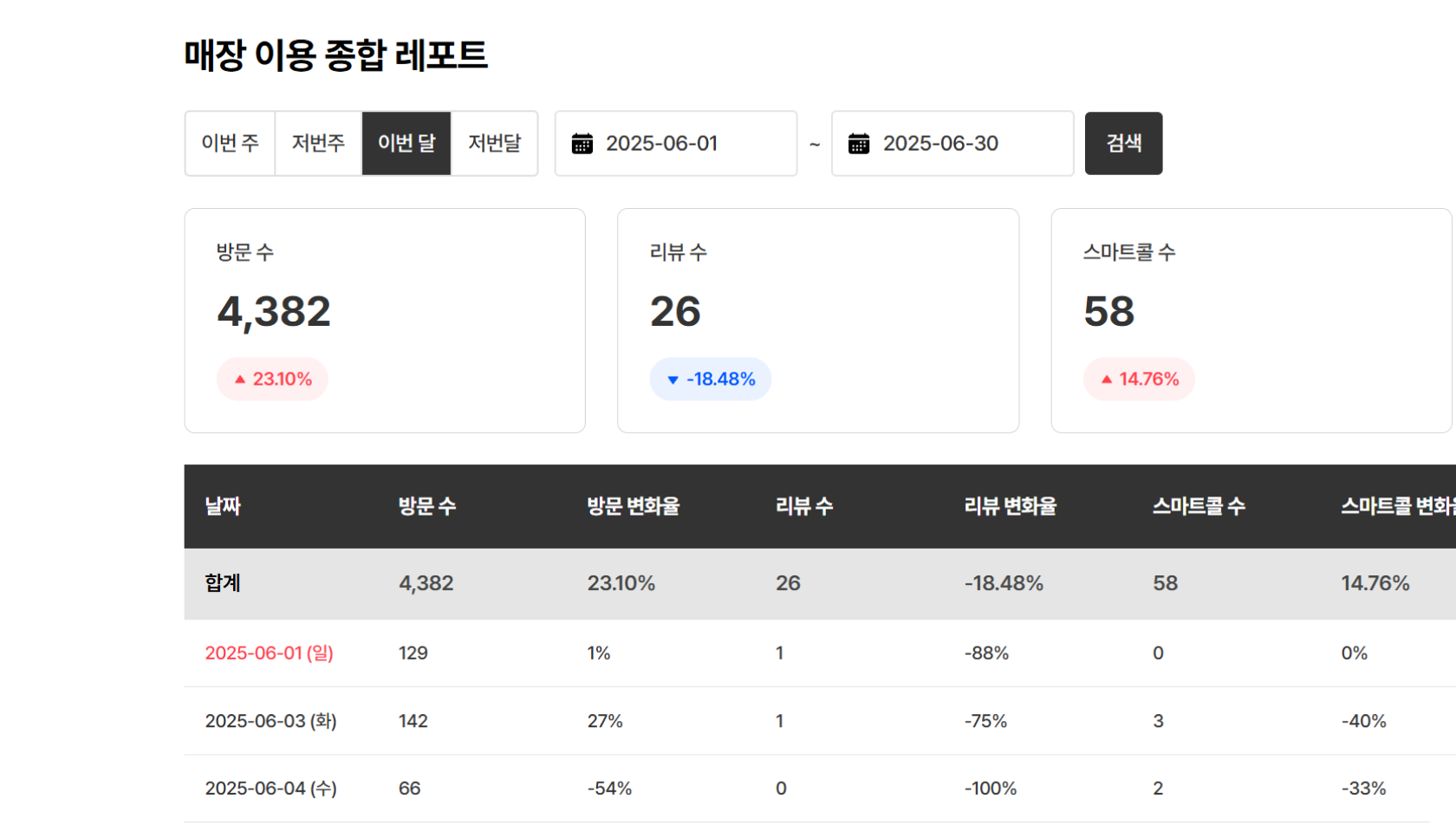 한 번의 연동으로 매장의 흐름부터 광고 및 콘텐츠 성과까지 자동으로 한눈에 정리됩니다. 그 결과, 데이터를 일일이 찾지 않아도 수치는 분석되고 핵심이 보입니다.